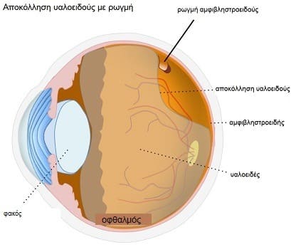 Καθώς το υαλοειδές αποκολλάται από τον αμφιβληστροειδή, μπορεί να δημιουργήσει ρωγμή, να ανασηκώσει και τελικά να ξεκολλήσει τον αμφιβληστροειδή, κατάσταση που είναι εξαιρετικά επείγουσα στην οφθαλμολογία. Η περιχαράκωση της ρωγμής με laser από τον οφθαλμίατρο μπορεί να προλάβει την αποκόλληση του αμφιβληστροειδούς και να γλιτώσει τον ασθενή από ένα δύσκολο χειρουργείο, την υαλοειδεκτομή.